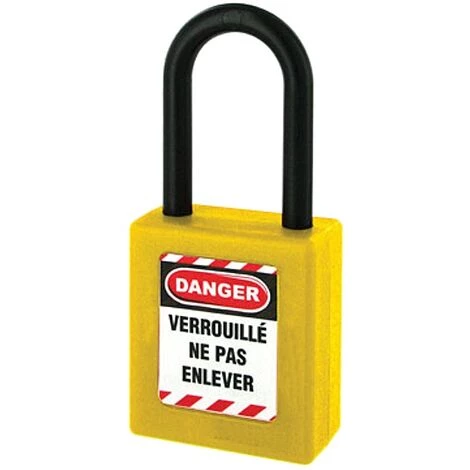 Cadenas de consignation jaune corps non conducteur, en 40 mm, anse nylon de 38 mm, Jaune, avec anse nylon de 38 mm.