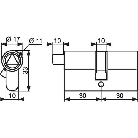 CaractĂ©ristiques : Type : ClĂ© / triangle T11 – Finition : NickelĂ© – Nombre de pièce : 1 – Longueur cylindre (mm) : 30 x 30