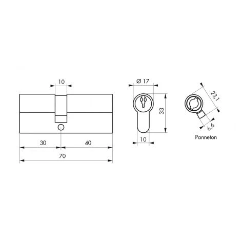 Cylindre PROFILE EUROPEEN, laiton, 30×40 mm, 3 clĂ©s BB1.