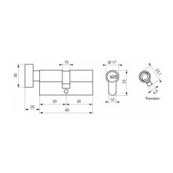 CYLINDRE TRAFIC 12 30X30 mm BOUTON 5 CLES PAR THIRARD