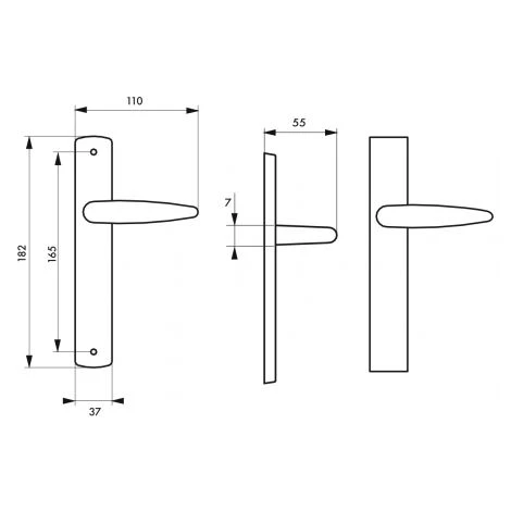 Plaques acier embouti. Béquilles alliage fondu. carré acier 7 mm. Vis métaux sécables. Entr’axe de fixation 165 mm.