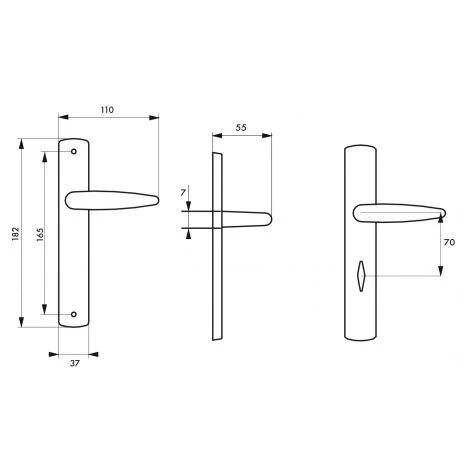 Plaques acier embouti. Béquilles alliage fondu. carré acier 7 mm. Vis métaux sécables. Entr’axe de fixation 165 mm.