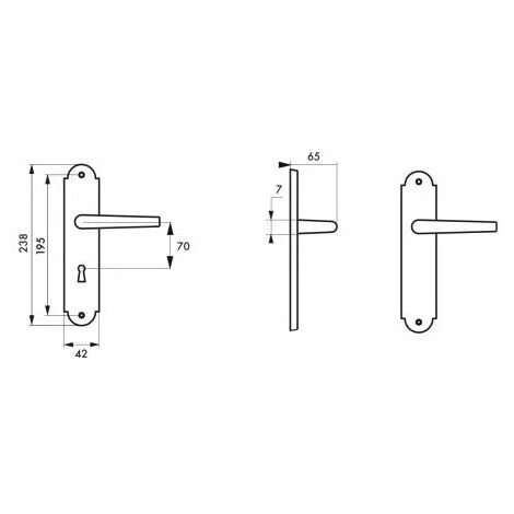 POIGNÉE DE PORTE INTÉRIEURE CHARON – ENTRAXES 195 mm EN ACIER PATINE TROU DE CLE PAR THIRARD