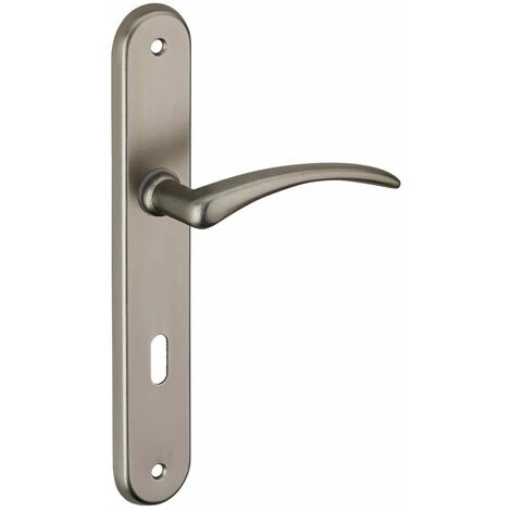 Poignée de porte Selen, alu nickel satiné, E195, à trou pour clé.