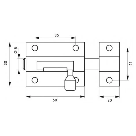 Corps laiton étiré. Gâche laiton étiré. Bouton laiton décolleté. Pêne rond coulissant.
