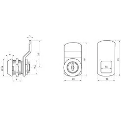 Corps alliage moulé. Mécanisme à paillettes 1 came plate + 1 came coudée. 2 clés nickelées. Ecrou de fi xation.- Usage : Boite aux lettres