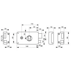 Coffre et gâche acier embouti. PĂŞne et demi-tour acier zinguĂ©. MĂ©canisme Ă 2 tours. Rappel du demi-tour par la clĂ©. CarrĂ© 6 mm. EntrĂ©e de cylindre et de fouillot laiton. Pour cylindre profilĂ© europĂ©en. 30 x 60 mm, pour porte de 45 mm.Ce boitier de serrure Ă appliquer Ă cylindre en acier est conçu pour verrouiller efficacement votre porte d’entrĂ©e. Il peut ĂŞtre ajoutĂ© Ă une porte dĂ©jĂ Ă©quipĂ©e pour renforcer davantage la sĂ©curitĂ©. Cette serrure est destinĂ©e Ă ĂŞtre complĂ©tĂ©e par un cylindre profilĂ©. DotĂ©e d’un mĂ©canisme Ă 2 tours, cette serrure s’installe facilement et offre un verrouillage efficace de votre porte pour garantir votre sĂ©curitĂ© et celle de vos biens. Ce boitier de serrure en applique horizontale Thirard a une finition noir granitĂ© et est disponible en diffĂ©rentes versions : avec verrouillage Ă fouillot, Ă tirage ou Ă cylindre, pour une pose Ă droite ou Ă gauche.- Dimension : 140x88mm