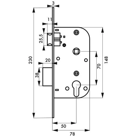 Coffre acier embouti. TĂŞtière acier bouts carrĂ©s. Demi-tour rĂ©versible sans dĂ©montage du coffre. PĂŞne alliage zinguĂ©. Gâche plate acier. CarrĂ© 8 mm, entr’axe 70 mm. Rappel du 1/2 tour par la clĂ©.Conçu pour Ă©quiper votre porte d’entrĂ©e, ce boitier de serrure Ă encaster Thirard est destinĂ© Ă ĂŞtre complĂ©tĂ© avec le cylindre de votre choix, vous permettant de choisir votre niveau de sĂ©curitĂ©. Avec son mĂ©canisme Ă rappel du demi-tour par la clĂ©, cette serrure s’installe facilement et offre un verrouillage efficace de votre porte pour garantir votre sĂ©curitĂ© et celle de vos biens. Ce boitier de serrure de porte Ă encastrer de 15cm de haut dispose d’une tĂŞtière Ă bouts carrĂ©s disponible en finition laitonnĂ©e ou nickelĂ©e.- Dimension : 78x148mm