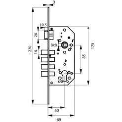 Coffre acier embouti. TĂŞtière acier bouts ronds. Demi-tour rĂ©versible sans dĂ©montage du coffre. PĂŞne alliage zinguĂ©. Gâche plate acier. CarrĂ© 8 mm, entr’axe 85 mm. Rappel du 1/2 tour par la clĂ©.Ce boitier de serrure encastrable Ă 4 pĂŞnes en acier est conçu pour Ă©quiper votre porte d’entrĂ©e. Cette serrure s’installe facilement et est destinĂ©e Ă ĂŞtre complĂ©tĂ©e avec le cylindre de votre choix. Avec son mĂ©canisme Ă rappel du demi-tour par la clĂ©, cette serrure Thirard offre un verrouillage efficace de votre porte pour garantir votre sĂ©curitĂ© et celle de vos biens. Ce boitier de serrure Ă encastrer dispose d’un axe Ă 60mm et d’une tĂŞtière Ă bouts arrondis disponible en finition laitonnĂ©e ou nickelĂ©e.- Dimension : 89x175mm