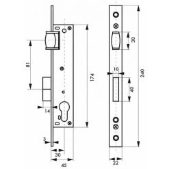 Coffre acier. TĂŞtière inox. PĂŞne alliage nickelĂ©. Gâche inox. CarrĂ© 8 mm, entr’axe 85 mm.