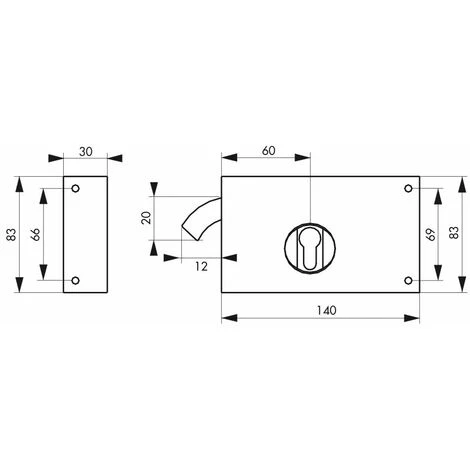 Coffre et gâche acier cambré. Crochet acier zingué. Mécanisme à 2 tours.- Dimension : 140x83mm