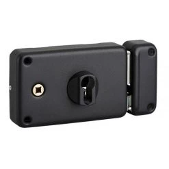 Coffre et gâche acier embouti. PĂŞne et demi-tour acier zinguĂ©. MĂ©canisme Ă 2 tours. Rappel du demi-tour par la clĂ©. CarrĂ© 6 mm. EntrĂ©e de cylindre et de fouillot laiton. Pour cylindre profilĂ© europĂ©en. 30 x 60 mm, pour porte de 45 mm.Ce boitier de serrure Ă appliquer Ă cylindre en acier est conçu pour verrouiller efficacement votre porte d’entrĂ©e. Il peut ĂŞtre ajoutĂ© Ă une porte dĂ©jĂ Ă©quipĂ©e pour renforcer davantage la sĂ©curitĂ©. Cette serrure est destinĂ©e Ă ĂŞtre complĂ©tĂ©e par un cylindre profilĂ©. DotĂ©e d’un mĂ©canisme Ă 2 tours, cette serrure s’installe facilement et offre un verrouillage efficace de votre porte pour garantir votre sĂ©curitĂ© et celle de vos biens. Ce boitier de serrure en applique horizontale Thirard a une finition noir granitĂ© et est disponible en diffĂ©rentes versions : avec verrouillage Ă fouillot, Ă tirage ou Ă cylindre, pour une pose Ă droite ou Ă gauche.- Dimension : 140x88mm
