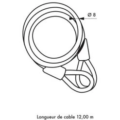 Pratique pour protĂ©ger vos objets contre le vol (vĂ©los, abri de jardin…) , ce câble antivol en acier gainĂ© de PVC a une longueur de 1,20m Ă 12m.
