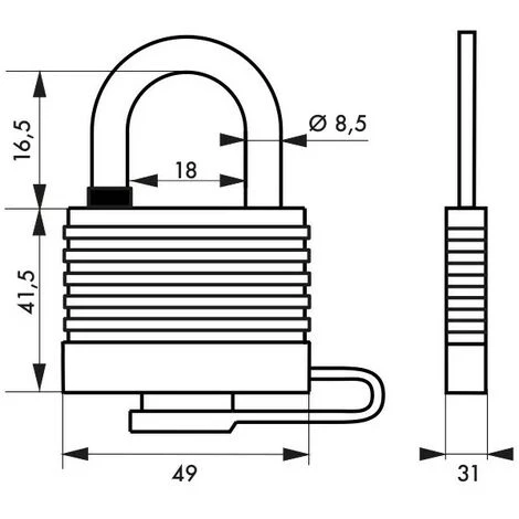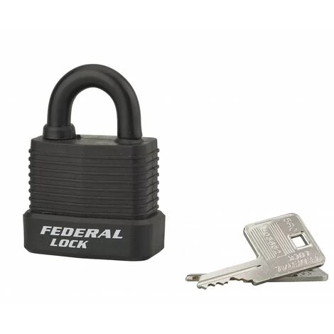 Corps à lamelles acier zingué gainé PVC. Anse acier cémenté gainée PVC. Double verrouillage par billes inox. Mécanisme à goupilles. 2 clés laiton nickelé gainé PVC.