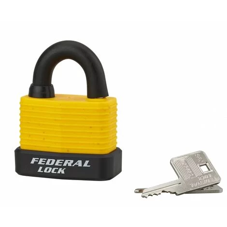 Corps à lamelles acier zingué gainé PVC. Anse acier cémenté gainée PVC. Double verrouillage par billes inox. Mécanisme à goupilles. 2 clés laiton nickelé gainé PVC.
