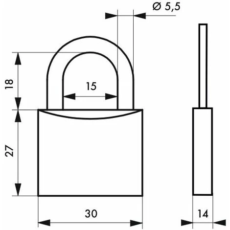 Corps acier. Anse acier cémenté nickelé. Mécanisme à goupilles. Simple ancrage. 3 clés acier nickelé.- Dimension : 30 mm