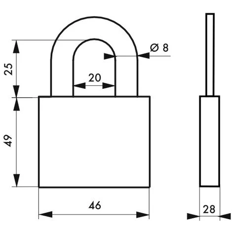 Les cadenas de la gamme FĂ©dĂ©ral Lock mesurent 46, 54 ou 63,5 mm de largeur. La hauteur de l’anse varie entre 25 et 27 mm sur les modèles classiques.