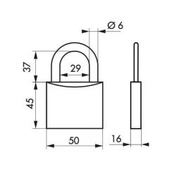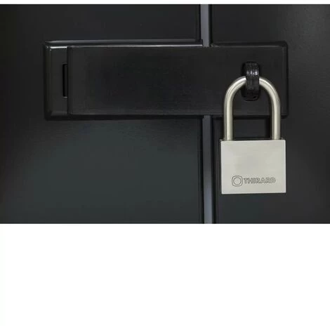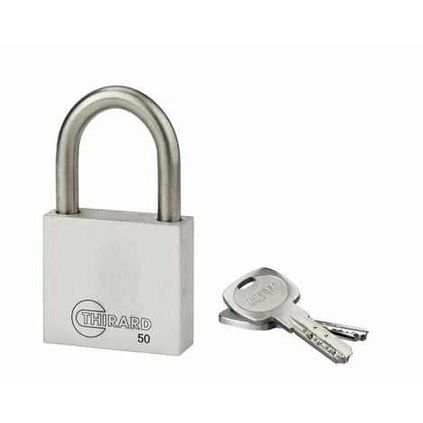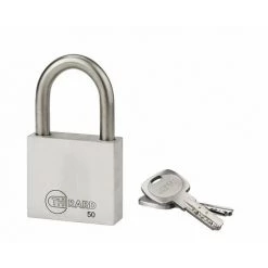 Corps inox. Anse inox. Mécanisme à goupilles. Double verrouillage par billes inox. Clé  » prisonnère » : Le cadenas doit être fermé pour reprendre la clé. 2 clés plates réversibles laiton nickelé avec carte de propriété, permettant la reproduction des clés exclusivement en usine.