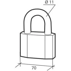 Corps acier. Anse acier cĂ©mentĂ© nickelĂ©. MĂ©canisme Ă goupilles. Double verrouillage par billes. Trou d’Ă©coulement d’eau. 3 clĂ©s rĂ©versibles.