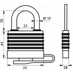 Corps à lamelles acier. Anse acier cémenté nickelé. Mécanisme à goupilles. Double ancrage. 2 clés laiton nickelé.- Dimension : 50 mm
