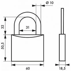 Corps laiton monobloc. Anse acier cémenté nickelé. Mécanisme à goupilles. Double ancrage. 2 clés acier nickelé.- Dimension : 60 mm