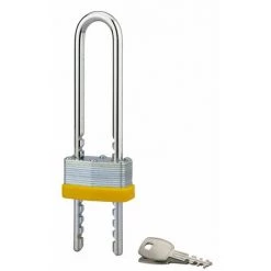 Corps à lamelles acier zingué protégé par bague PVC. Anse acier. Mécanisme à disques. 2 clés acier nickelé. Couleurs assorties