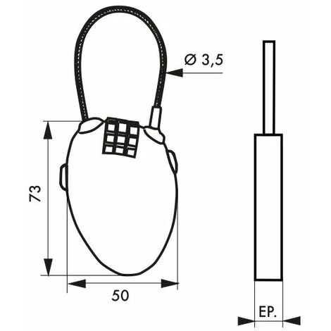Corps ABS. Câble acier Ø 3,5 mm long. 0,55 m. Mécanisme à 3 viroles. Combinaison modifiable.- Dimension : 50 mm
