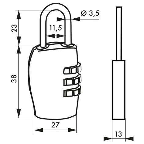 Corps alliage moulé. Anse acier nickelé. Mécanisme à viroles. Combinaison modifiable.- Dimension : 27 mm