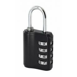 Corps alliage moulé. Anse acier nickelé. Mécanisme à 4 viroles. Combinaison modifiable (10 000 combinaisons possibles).