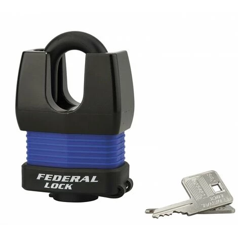 Cadenas Ă lamelles acier zinguĂ© protegĂ© par coque pvc, anse acier cementĂ© gainĂ© pvc, protecteur d’anse en alliage, double verrouillage par bille inox, mecanismes Ă 5 goupilles, largeur 55mm, livrĂ© avec 2 clĂ©s