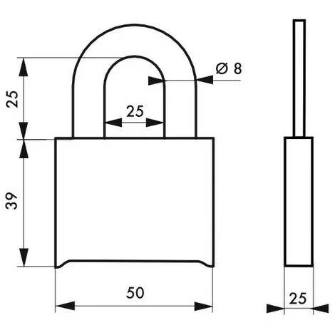 Corps laiton. Anse acier inoxydable A2. Mécanisme à 4 viroles. Combinaison modifiable par clé. 10 000 combinaisons possibles.