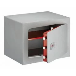 Le coffre-fort Ă poser Bran est Ă©quipĂ© d’une serrure Ă double panneton asymĂ©trique Ă 8 gorges, pour une protection optimale contre le crochetage. Sa porte est dotĂ©e de 2, 4 ou 5 pĂŞnes tournants anti-sciage et d’une plaque de protection en acier au manganèse pour protĂ©ger la serrure. Son système de clĂ© prisonnière Ă©vite les oublis et les vols tant que la porte est ouverte. Ce coffre de sĂ©curitĂ© est dotĂ© d’une seule soudure pour dissuader les tentatives de forçage. De plus, la fixation au mur et/ou au sol est possible grâce aux trous dĂ©jĂ percĂ©s et aux accessoires fournis.Garanti 10 ans, ce coffre de haute suretĂ© en finition grise est fourni avec ses deux clĂ©s et leur carte de propriĂ©tĂ© pour la reproduction exclusive en usine.