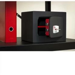 Le coffre de sĂ©curitĂ© Ă poser Frontenac est Ă©quipĂ© d’une serrure Ă double panneton asymĂ©trique Ă 6 gorges, pour une protection optimale contre le crochetage. Ce petit coffre-fort est destinĂ© Ă sĂ©curiser les objets de petite taille. Sa porte est dotĂ©e de 2 pĂŞnes tournants en acier et d’une plaque de protection en acier au manganèse pour protĂ©ger la serrure. Son système de clĂ© prisonnière Ă©vite les oublis et les vols tant que la porte est ouverte. Ce coffre de sĂ©curitĂ© est dotĂ© d’une seule soudure pour empĂŞcher les tentatives de forçage. De plus, la fixation au mur et/ou au sol est possible grâce aux trous dĂ©jĂ percĂ©s et aux accessoires fournis.Ce coffre-fort Frontenac en finition Ă©poxy noir est garanti 5 ans et fourni avec ses deux clĂ©s.