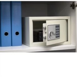 Le coffret de sĂ©curitĂ© Ă poser Vincennes est Ă©quipĂ© d’une serrure Ă©lectronique Ă combinaison de 3 Ă 8 chiffres modifiable. Ce coffre-fort est destinĂ© Ă sĂ©curiser les objets de petite ou moyenne taille selon le modèle choisi. Sa porte est dotĂ©e de 2 pĂŞnes en acier. Ce coffre de sĂ»retĂ© est dotĂ© de quatre trous pour permettre la fixation au mur et/ou au sol est possible. Les accessoires de fixation sont fournis.Ce coffre-fort en finition Ă©poxy beige est garanti 2 ans et fourni avec ses deux clĂ©s de secours.