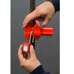 Corps polypropylène non conducteur. Pour vanne 1/4 de tour, plat largeur mini 15 mm Ă 30 mm. RĂ©sistant Ă la chaleur, au froid, Ă l’abrasion, et aux produits chimiques. Verrouillage par cadenas.