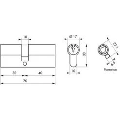 THIRARD – Cylindre à Clé Crantée 30 X 40 Mm 3 Clés Avec Vis De 45 Mm Nickelé