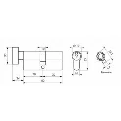 Profil européen alu. Mécanisme à 5 goupilles. Panneton anti arrachement. 3 clés en acier nickelé