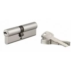 Profil europĂ©en laiton. MĂ©canisme Ă 6 goupilles contre le crochetage. Protection contre le perçage par aiguille et 1ère goupille en acier trempĂ©. Panneton anti arrachement. Fonction urgence Panneton dĂ©brayable : ouverture possible de l’extĂ©rieur mĂŞme si une clĂ© est restĂ©e Ă l’intĂ©rieur (sauf conditionnement en boite). 5 clĂ©s plates rĂ©versibles laiton nickelĂ© avec carte de propriĂ©tĂ©.