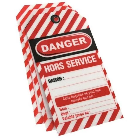 Accessoires de consignationEtiquettes de consignation Lot de 10 Ă©tiquettes de consignation polyester avec Ĺ“illet mĂ©tal. A placer sur un cadenas de consignation.PlastifiĂ©e, rĂ©sistante Ă l’eau, Ă la graisse et aux salissures. Dimensions : 75