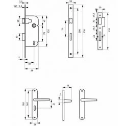 Coffre acier embouti. TĂŞtière acier. Demi-tour alliage rĂ©versible sans dĂ©montage du coffre. PĂŞne acier. Gâche plate acier. MĂ©canisme Ă 1 ou 2 tours (avec 2 clĂ©s). CarrĂ© 7mm, entr’axe 70 mm. 1 clĂ©. 6 variures.- Axe : 40 mm