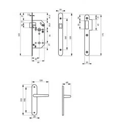 Coffre acier embouti. Têtière acier bouts ronds. Demi-tour bipente alliage réversible sans démontage du coffre. Gâche plate acier zingué. Carré 7mm.