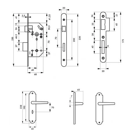 Coffre acier embouti. TĂŞtière acier bouts ronds. Demi-tour bipente alliage rĂ©versible sans dĂ©montage du coffre. PĂŞne acier galvanisĂ©. Gâche plate acier zinguĂ©. CarrĂ© 7mm, entr’axe 70 mm.