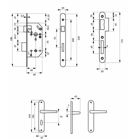 Coffre acier embouti. TĂŞtière acier bouts ronds. Demi-tour bipente alliage rĂ©versible sans dĂ©montage du coffre. PĂŞne acier galvanisĂ©. Gâche plate acier zinguĂ©. CarrĂ© 7mm, entr’axe 70 mm.