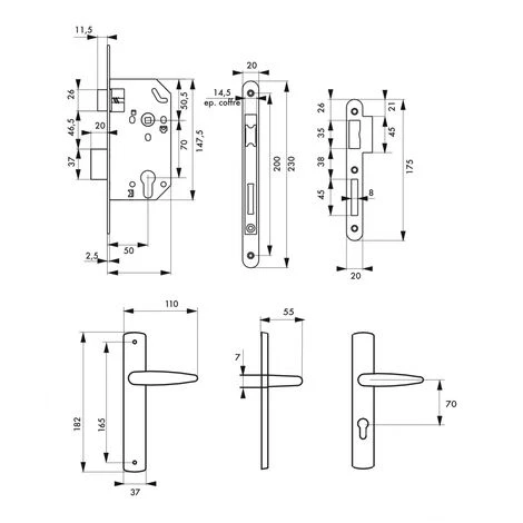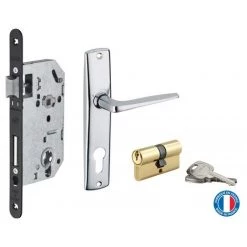 Coffre acier embouti. TĂŞtière acier bouts ronds. Demi-tour bipente alliage rĂ©versible sans dĂ©montage du coffre. PĂŞne acier galvanisĂ©. Gâche plate acier zinguĂ©. MĂ©canisme Ă 2 tours. Rappel du 1/2 tour par la clĂ©. CarrĂ© 7mm, entr’axe 70 mm.