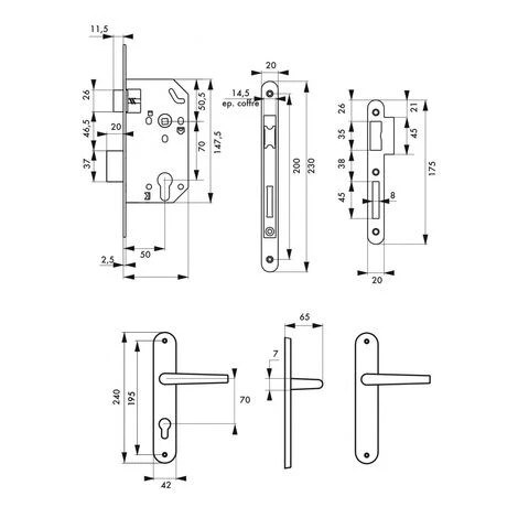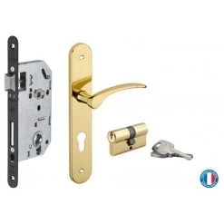 THIRARD – Garniture Serrure Encastrable Monomax NF à Cylindre + Ensemble Poignées Dionysos, Axe 50mm, Bouts Ronds, 3 Clés