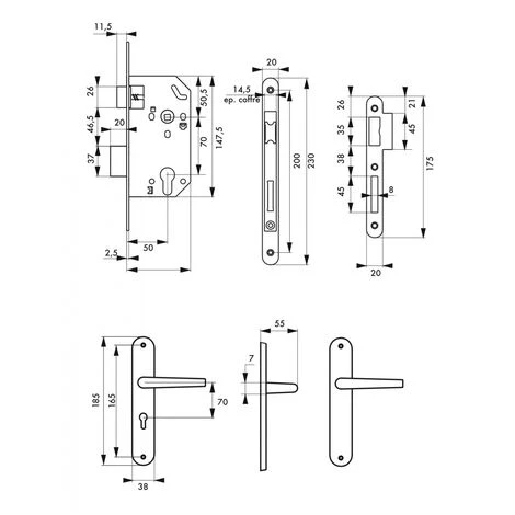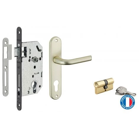 THIRARD – Garniture Serrure Encastrable Monomax NF à Cylindre + Ensemble Poignées Leto, Axe 50mm, Bouts Ronds, 3 Clés