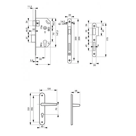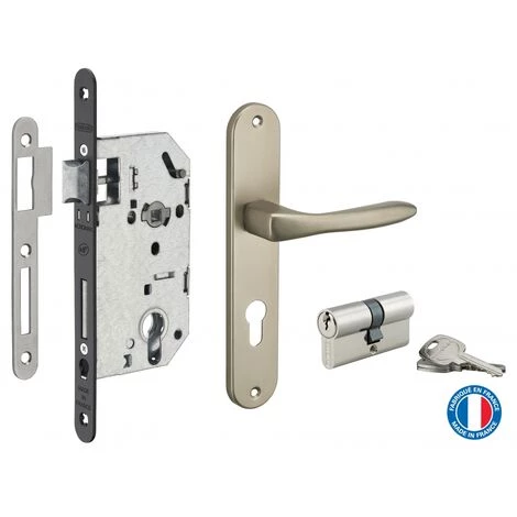 THIRARD – Garniture Serrure Encastrable Monomax NF à Cylindre Nickelé + Ensemble Poignées Héra, Axe 50mm, Bouts Ronds, 3 Clés