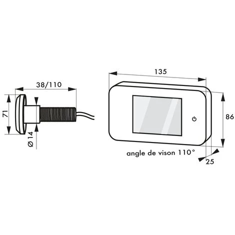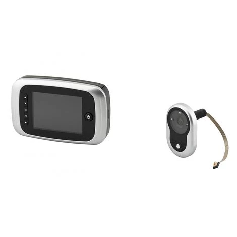 Corps ABS. CamĂ©ra 0,3 mĂ©ga pixels avec un angle de vision de 110°. Écran viÂdĂ©o LCD intĂ©rieur 3,5. Vision nocturne. MĂ©morisation horodatĂ©e sur carte mĂ©moire Micro SD. Alimentation par 4 piles AA. Avec sonnetteCe judas numĂ©rique Ă sonnette vous permet de sĂ©curiser votre porte d’entrĂ©e tout en Ă©tant très utile. Adaptable sur tous les types de portes d’entrĂ©e entre 38mm et 110mm de largeur, ce judas offre un champ de vision Ă 110° et apportera une sĂ©curitĂ© supplĂ©mentaire Ă votre maison ou appartement. Ce judas Ă camĂ©ra 0,3 mĂ©ga pixels retransmet les images sur un Ă©cran vidĂ©o LCD de 3,5 » fourni avec la possibilitĂ© d’enregistrer les images grâce Ă une carte mĂ©moire micro SD. Il possède Ă©galement une vision nocturne, très utile si votre porte d’entrĂ©e n’est pas bien Ă©clairĂ©e. Ce judas numĂ©rique pour porte d’entrĂ©e offre une double utilitĂ© puisqu’il sert aussi de sonnette.- Usage : Porte d’entrĂ©e