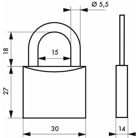 Corps laiton. Anse acier cémenté nickelé. Mécanisme à goupilles. Simple ancrage. 2 clés par cadenas.- Dimension : 30 mm
