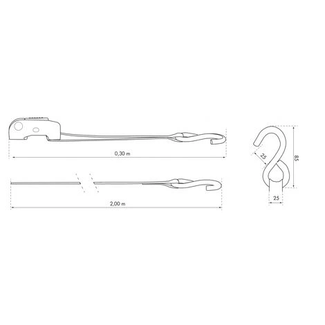 Sangle polyester 25mm x 2,00m à boucle autobloquante avec crochets S caoutchoutés.